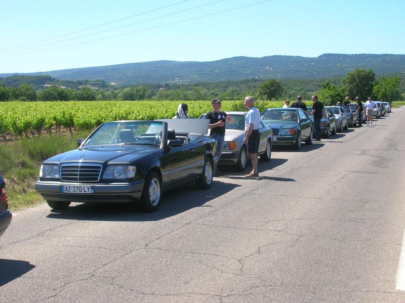 Les participants du vendredi soir sont tous très bien arrivés, l'ambiance est déjà au top. Les w124 brillent sous le soleil du Lubéron.