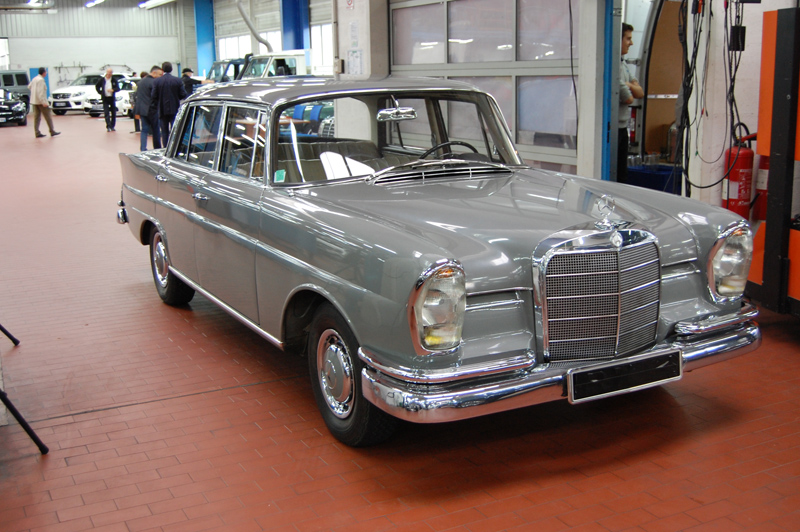 La berline W111 couleur aubergine était une 230 S (modèle de fin de vie succédant à la 220 SE, mais à carbus. De même puissance cependant)