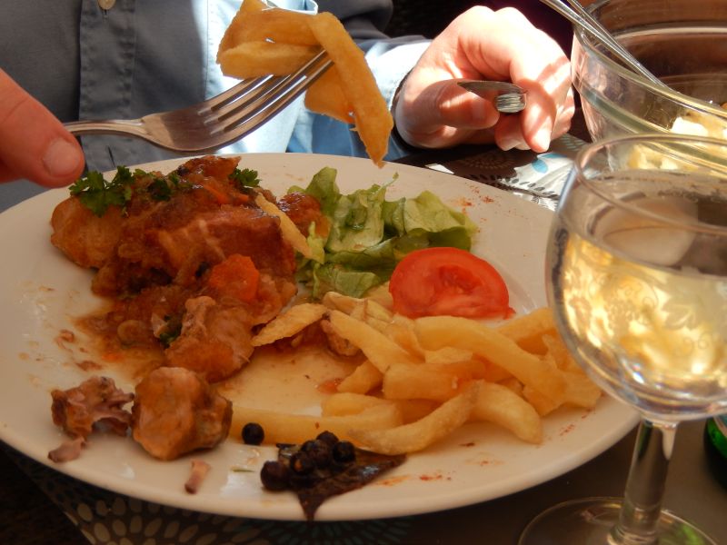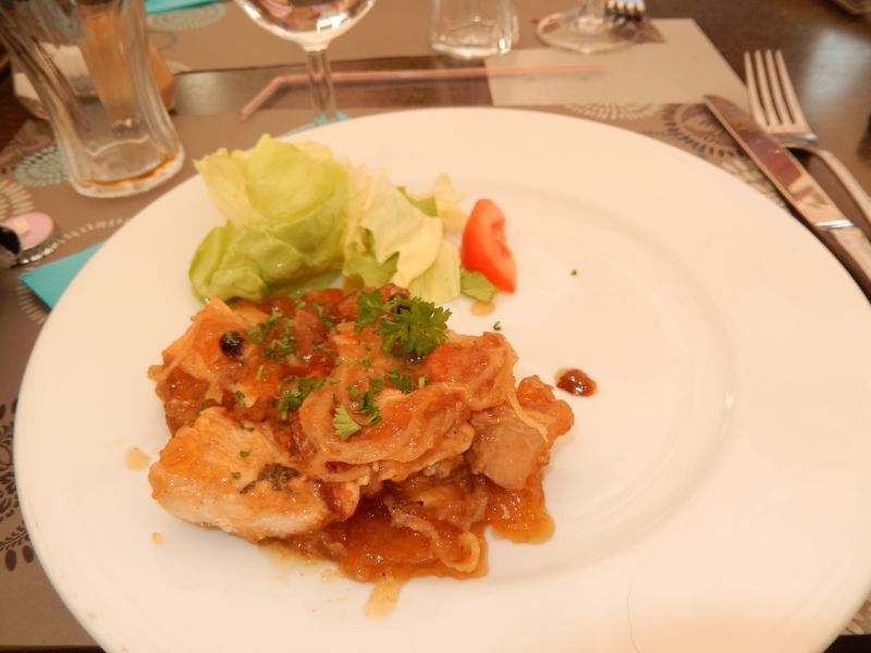 Après l'entrée (terrine maison) que j'ai oubliée de photographier, les fourchettes continuent de crépiter bon train :