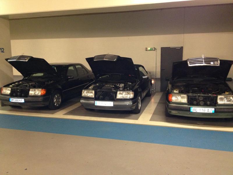 2 cabriolets, 1 break, 2 coupés, 2 berlines dont une 500E et une BMW composaient le parc du club ce matin.